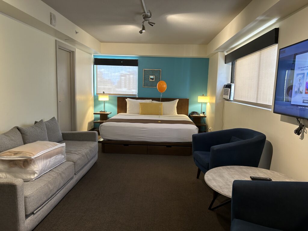 Googleのレビューにもありましたが日本人の方はほとんど泊まっていないのか、見かけずでした。他にもクーラーが窓コンなのでうるさい、道路が近いので騒音で寝れないなども書いていました。確かに窓コンの音も車や救急車などの音も聞こえていました。でも私にとっては寝れないぐらいではなかったです。我が家はみんな窓コンの音が気にならなかったので風量を強めて洗濯物を乾かしたり車の騒音を気持ち聞こえづらくしました(笑)