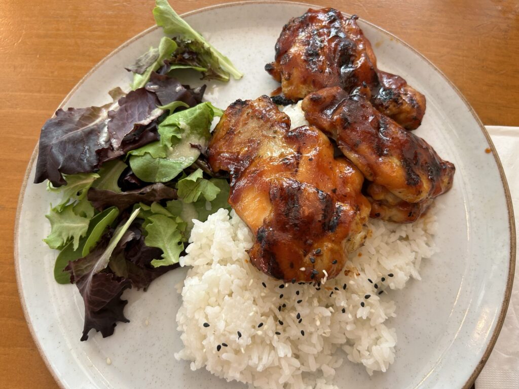 店頭で試食を配っていたのでぜひ食べてみてください!↓このお肉が柔らかくて、ご飯もちょっと塩見が効いていて美味しかったです。謎の緑のタレ?は辛くもなく、パクチーっぽい??感じでした。