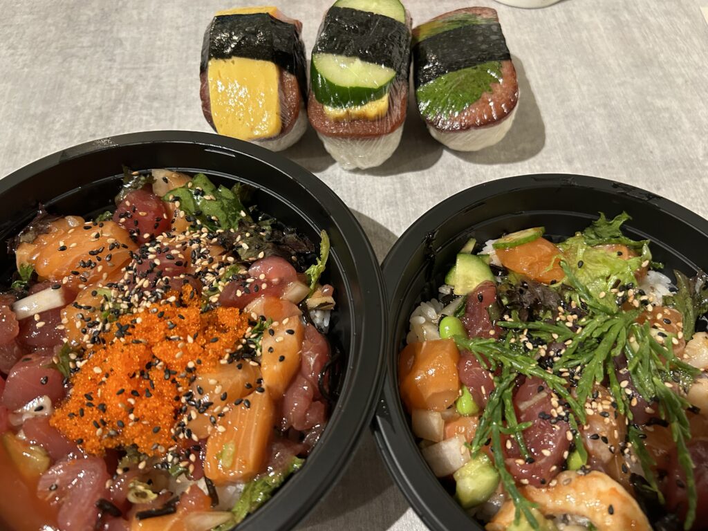 上のスパむすびはマグロスポットからすぐのMusubi Cafe IYASUMEで子ども用に買いました。というのも子どもは日本でマグロやサーモンなどのお寿司を好まず、、でもハワイでポキ丼を食べてから、サーモンやマグロも食べられるようになりました!